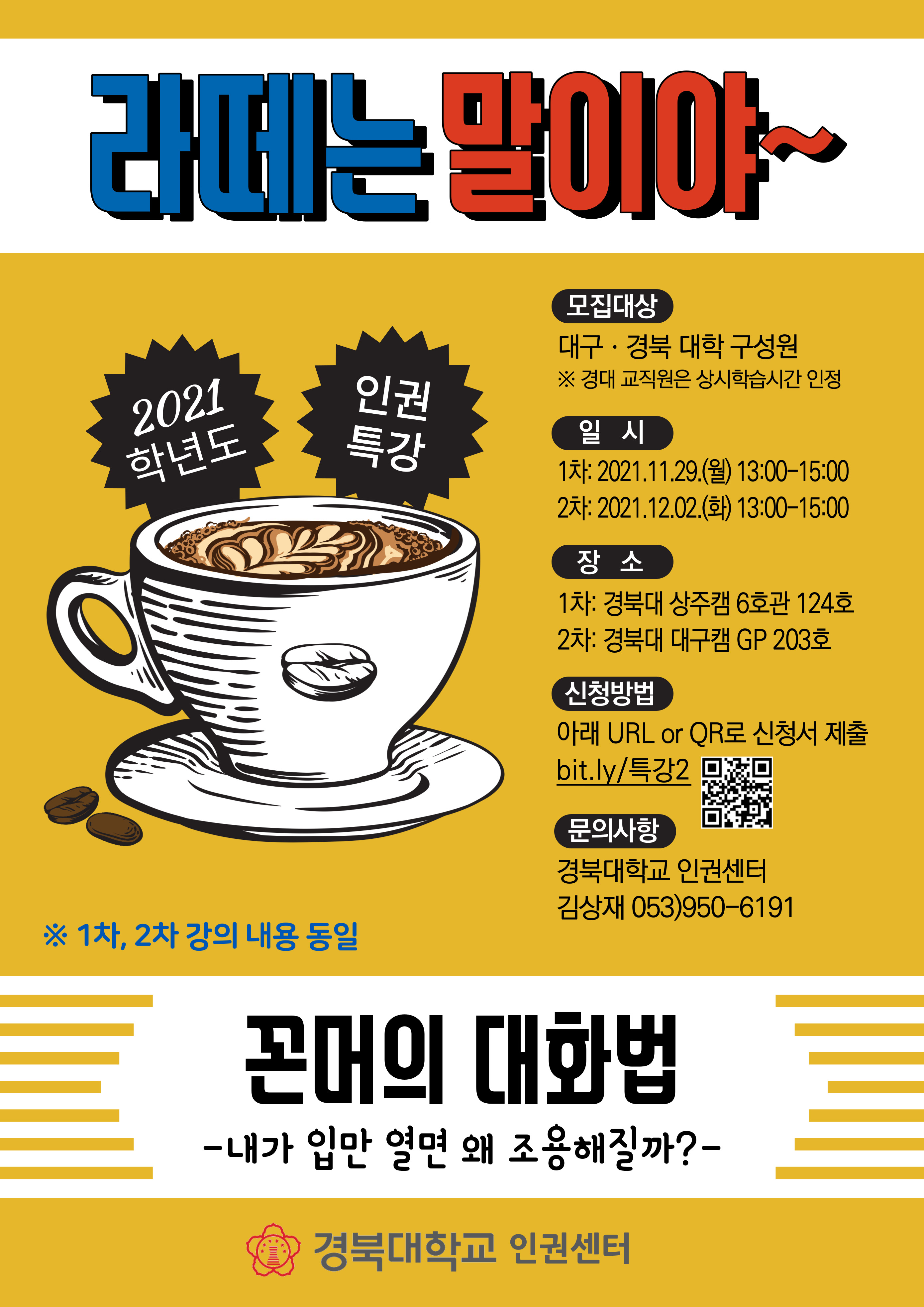 ► 경북대학교에서 인권감수성 제고를 위한 인권특강을 개최합니다.